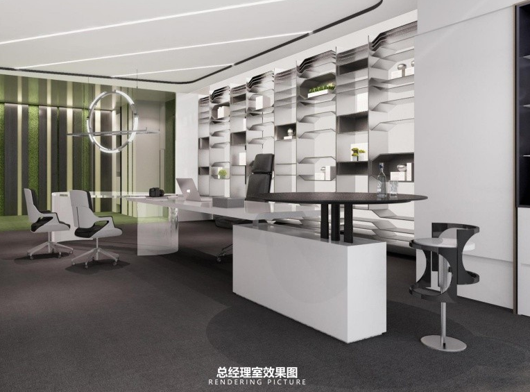 視覺焦點辦公桌背后墻面可設置企業(yè)標志、藝術(shù)裝置或書架,成為空間核心;會議區(qū)采用圓形或橢圓形桌型,促進平等溝通。