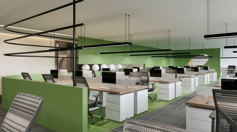設(shè)計(jì)細(xì)節(jié):推薦使用防火防潮的生態(tài)板,搭配暖色調(diào)燈光,營(yíng)造溫馨自然的辦公氛圍。