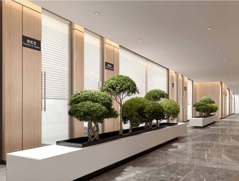 綠植:如盆栽植物、綠墻等,可以凈化空氣、增加氧氣含量,并營造出生機(jī)勃勃的辦公環(huán)境。